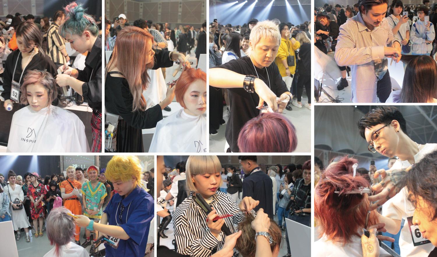 35分鐘之內的緊張造型時間,向上千人傳達創作的熱情與精湛的技術,有搶眼的染髮藝術、有迅速俐落的剪裁、有完美捲度呈現的燙髮造型,參觀來賓都可以近距離觀看,甚至有幾位高人氣沙龍設計師的面前更是擠得水泄不通!