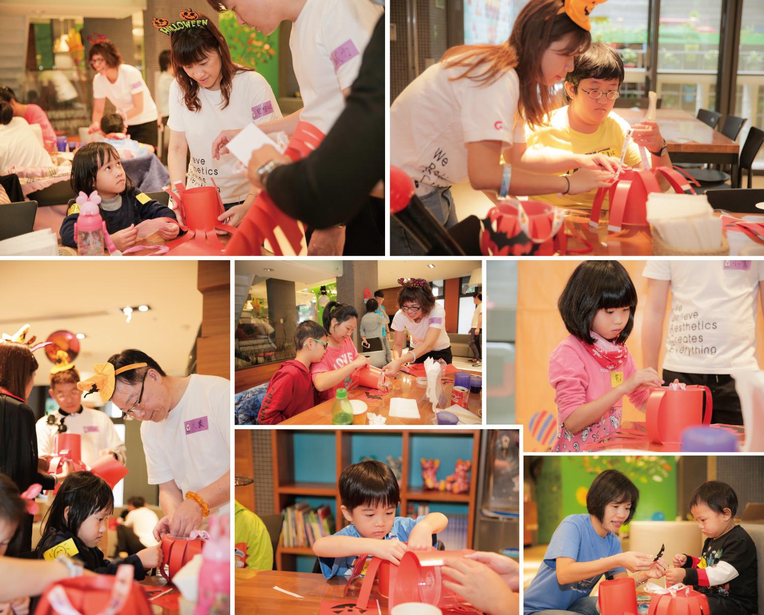 協助小朋友製做南瓜提桶,等等準備闖關打鬼要糖果囉!