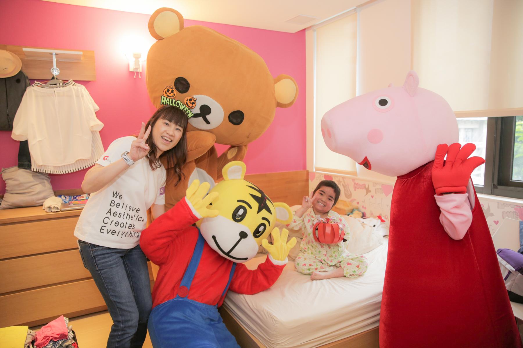 哥德式董事長也親自與萌萌人偶,一同將裝滿糖果的南瓜桶贈送給無法參與活動的小妹妹,將歡樂的氣息擴大!希望小朋友們都能得到滿滿的活力喲~