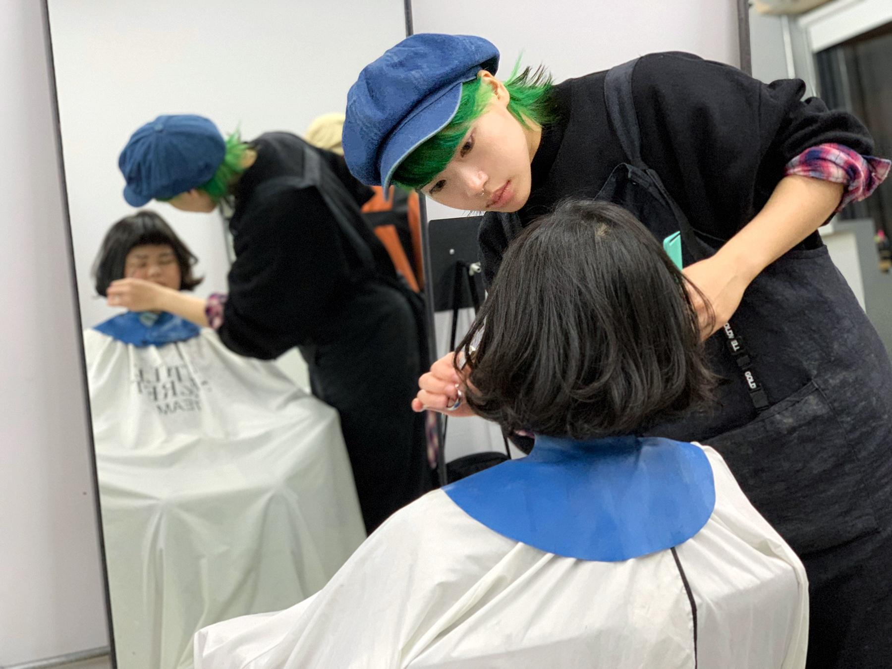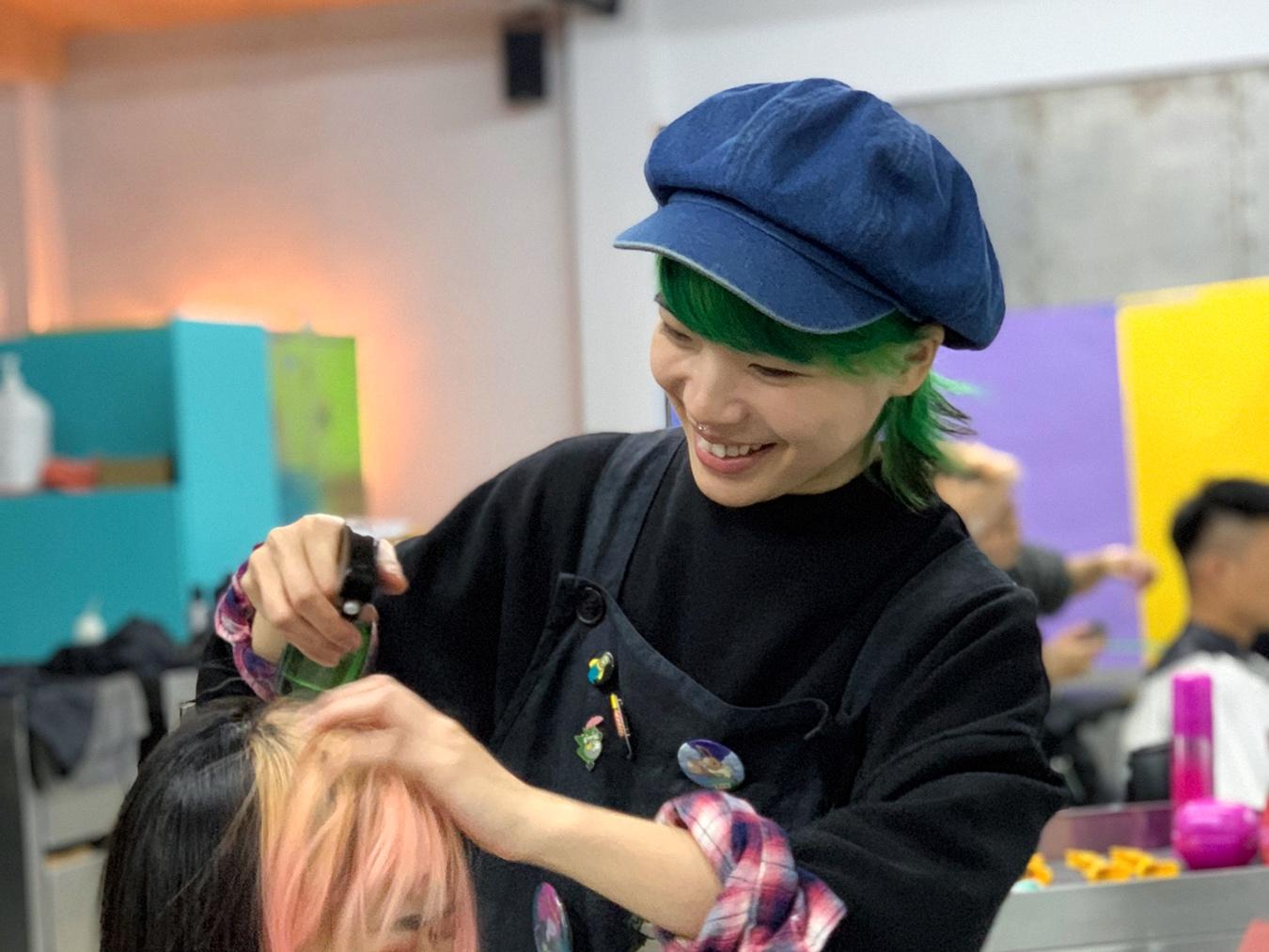 從瀏海到耳後再到髮尾甚至延續到服裝,整體視覺延伸,如同在人跟人之間的冷漠中,注入流動的血液,連結人與人之間的情感。